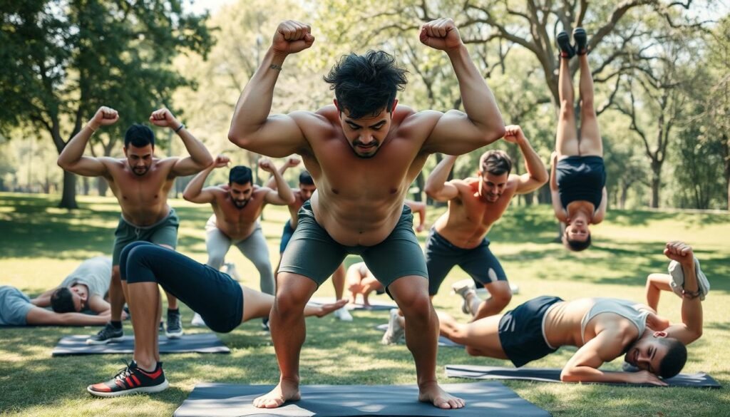 To reach your fitness goals, mix different bodyweight exercises in your home workouts. Focus on the right form and technique to get the best results. Whether you’re new to fitness or already advanced, there are exercises for everyone.